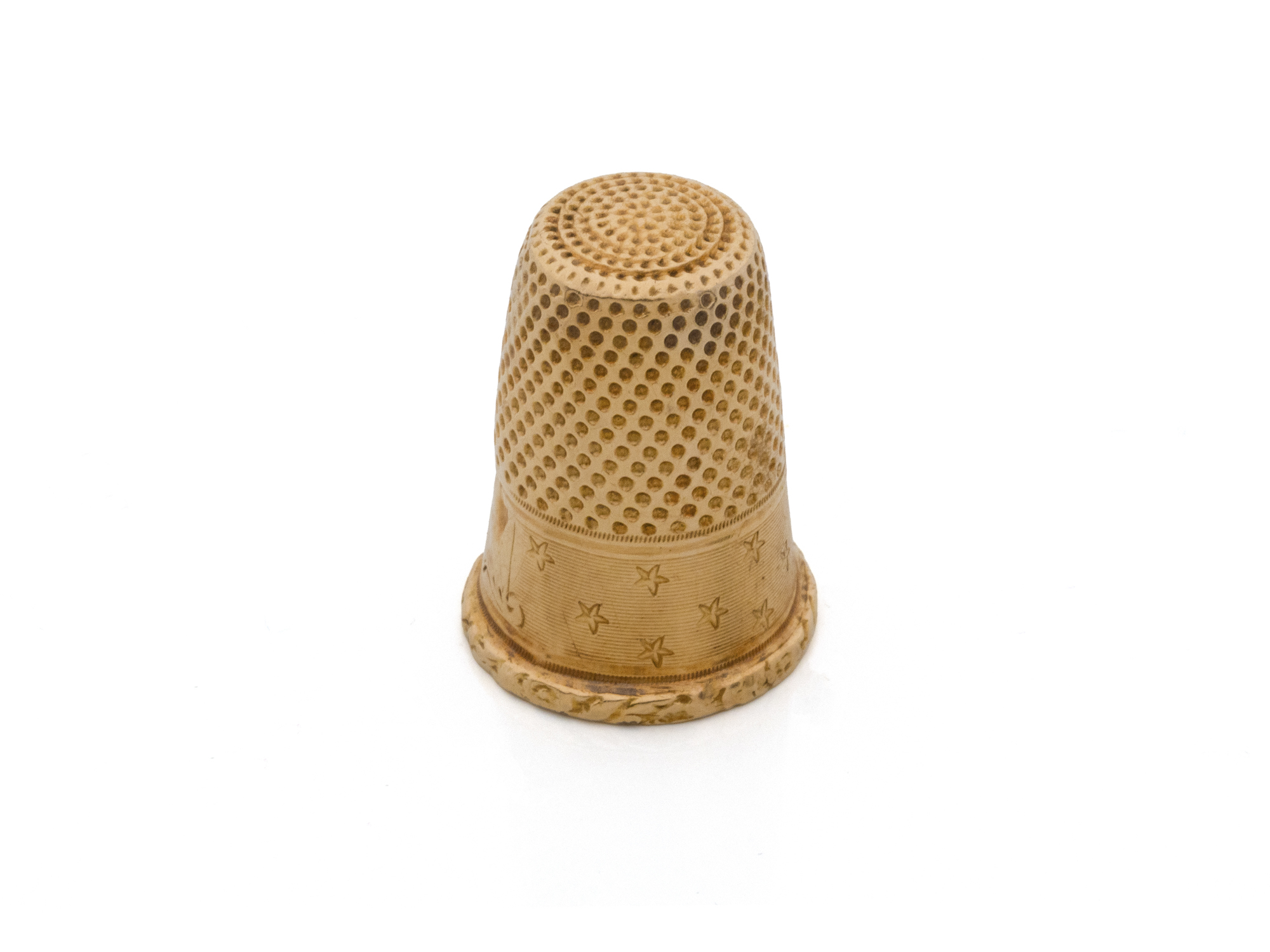 Lot n°23NV1008Dé à coudre en or 750 millièmes, à décor partiel étoilé sur fond guilloché. Vers 1900. (petits chocs)
