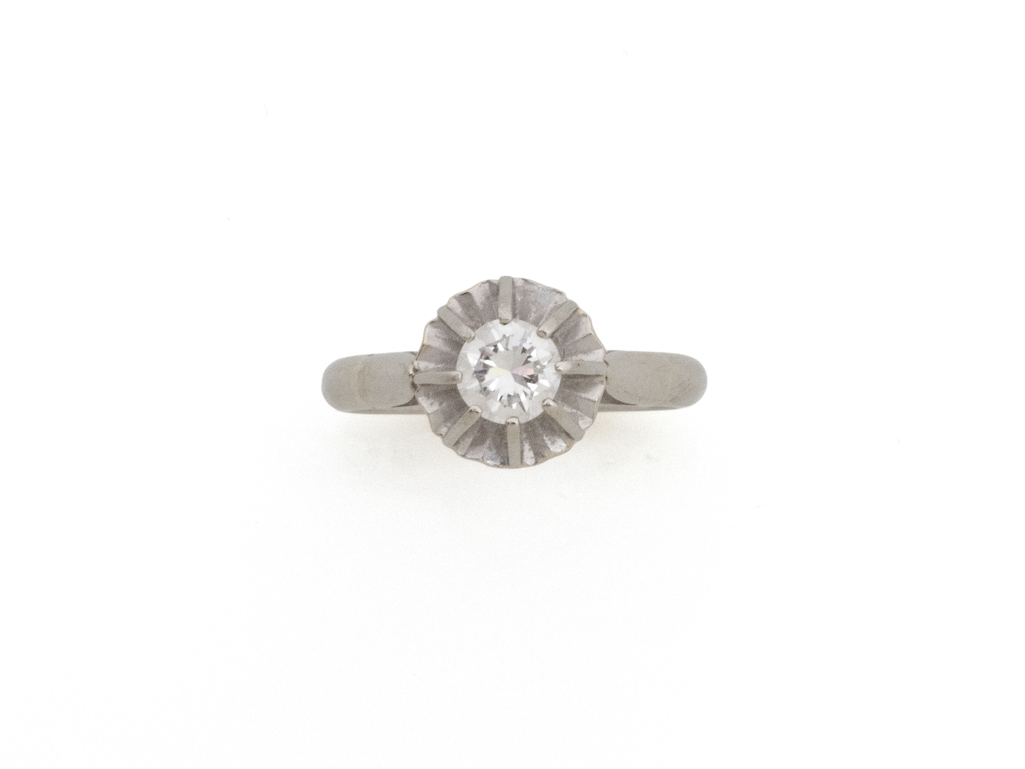 Lot n°72NV1126Bague solitaire en or 750 et platine 850 millièmes ornée d'un diamant taille ancienne en serti griffe. Travail français vers 1920/30.