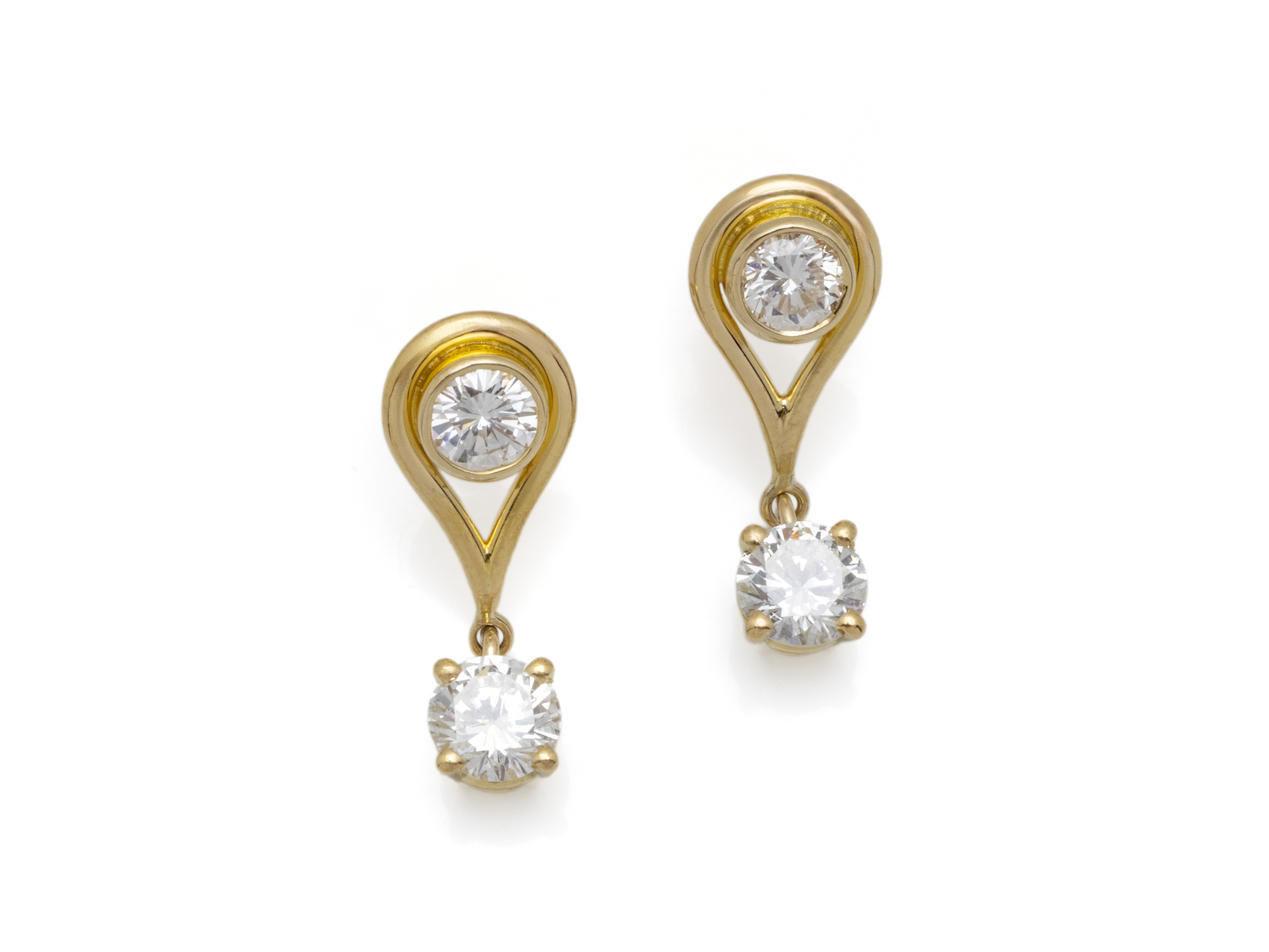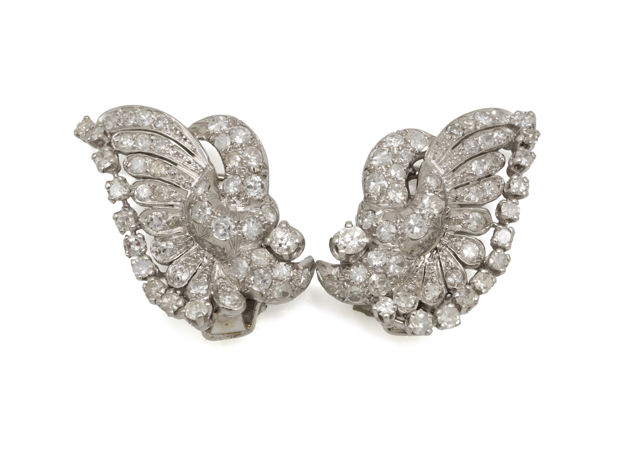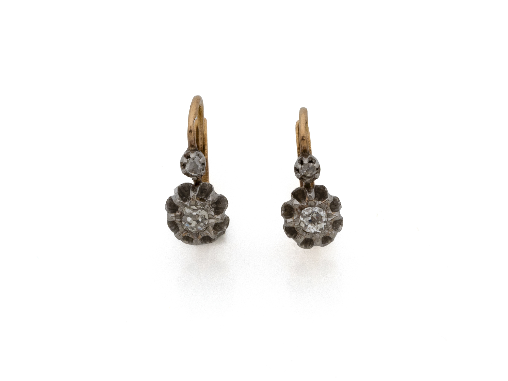 Lot n°56NV1033Paire de boucles d'oreilles dormeuses en or 750 et platine 850 millièmes, ornées de diamants taille ancienne. Travail Français de la fin du XIX°, début du XX° siècle.