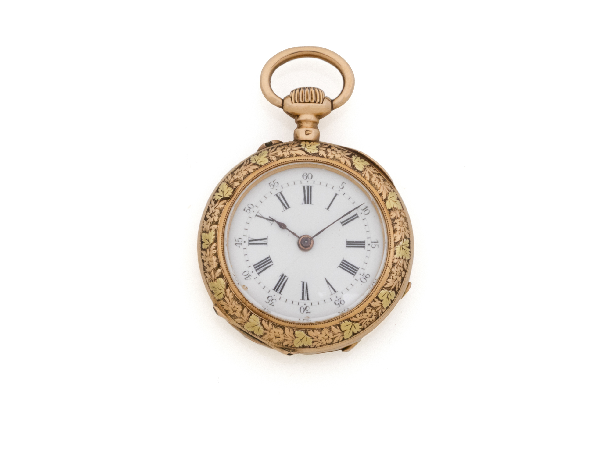 Lot n°40NV1130Attache de montre en or 750 millièmes finement ciselé. Travail français de la fin du XIX°, début XX° siècle. Poinçon au cheval.