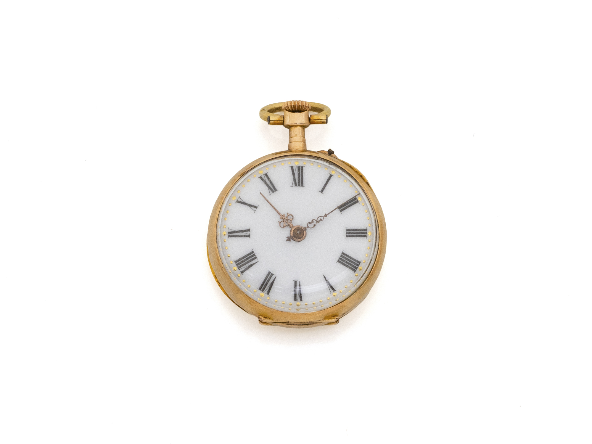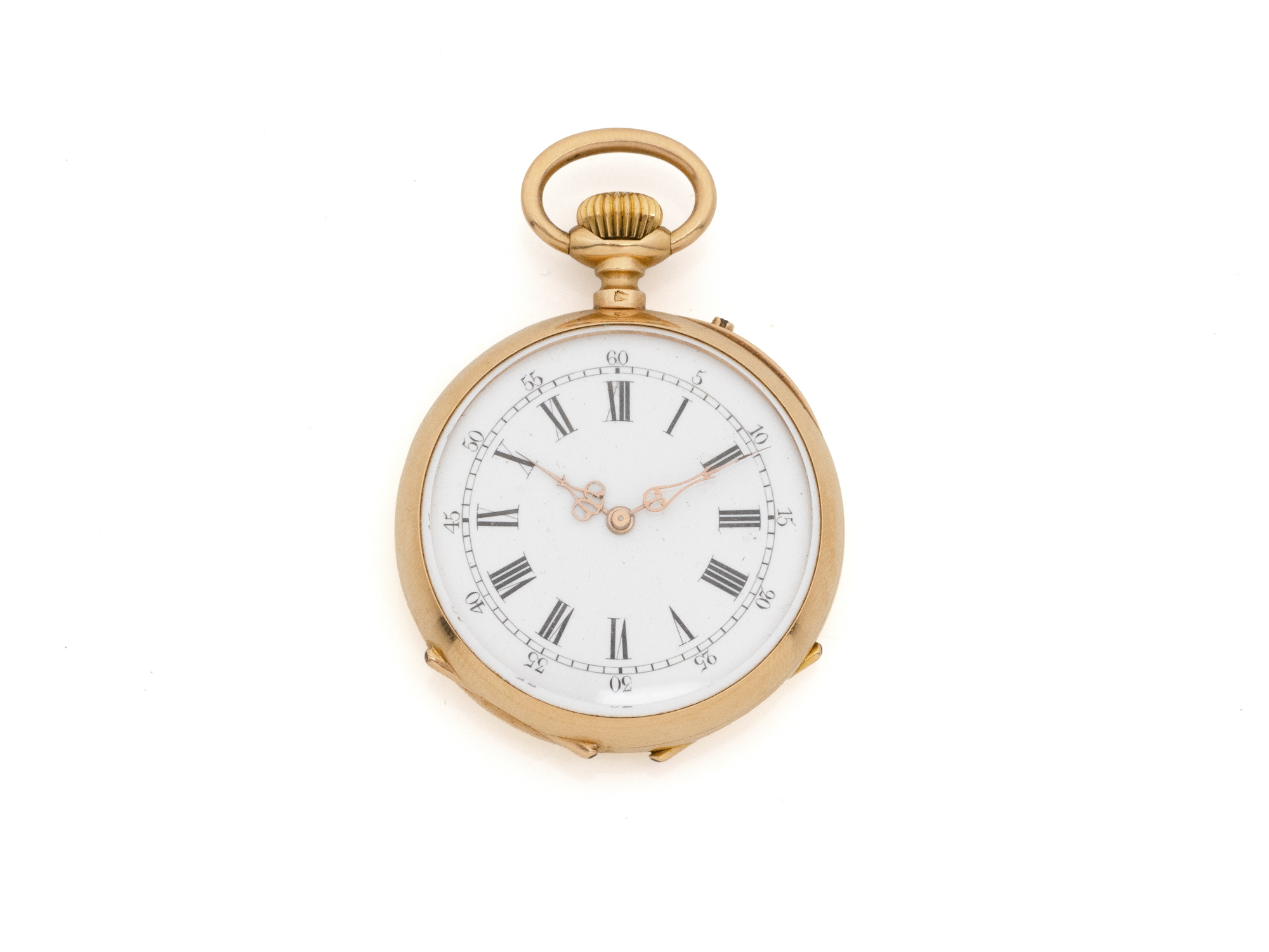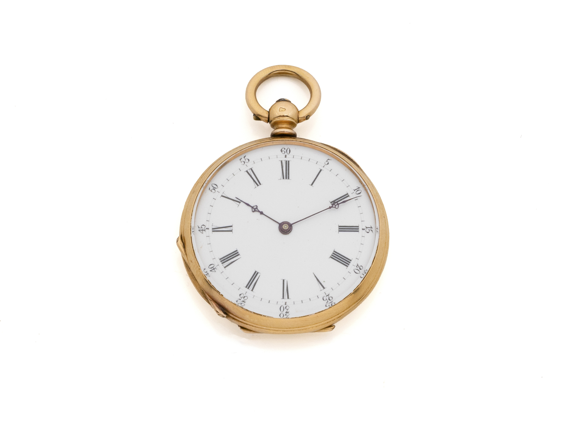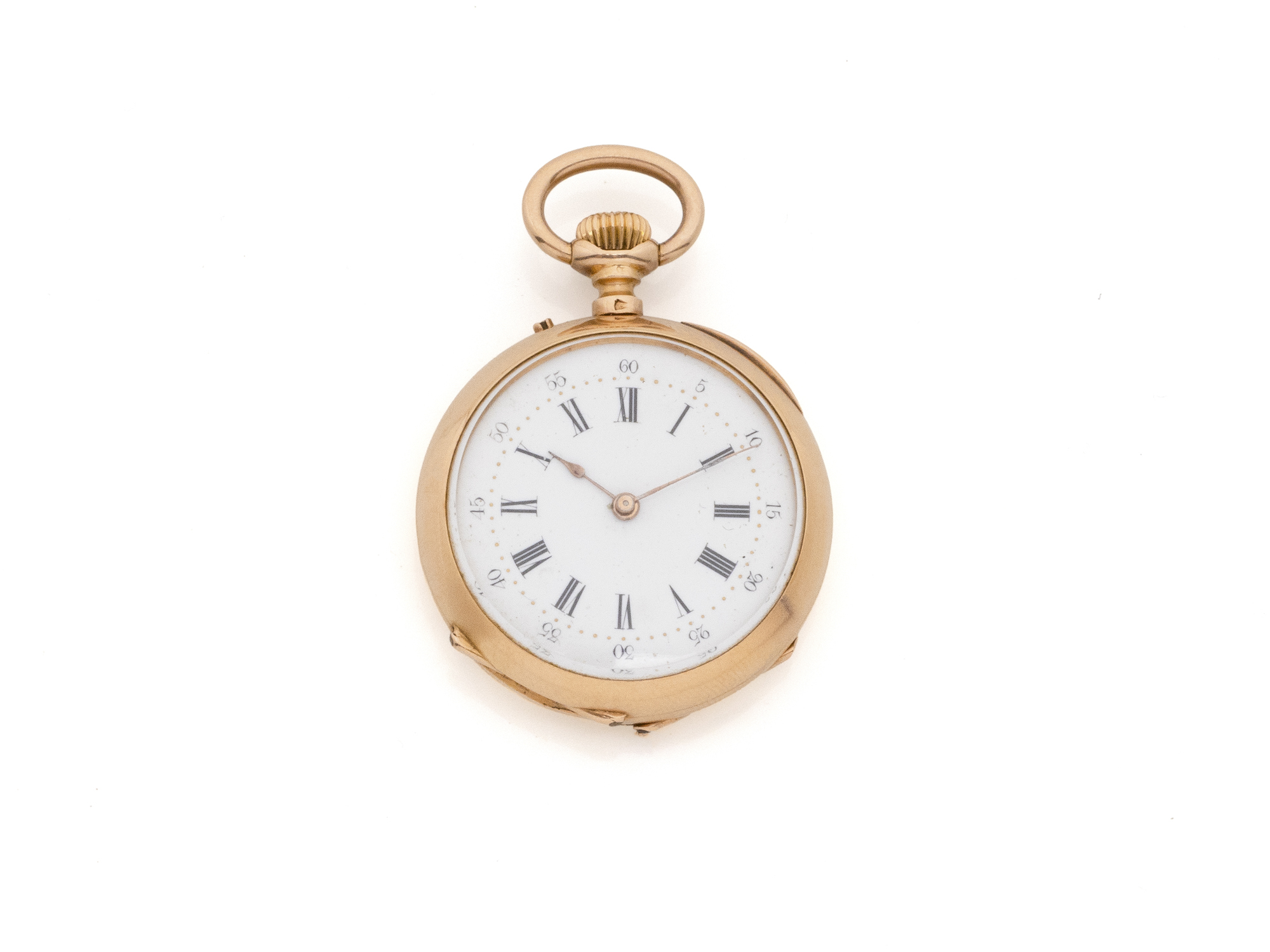 Cadran, mouvement et fond de boîte signés. Travail français pour la boucle rapportée. (petit choc au dos, rayures)