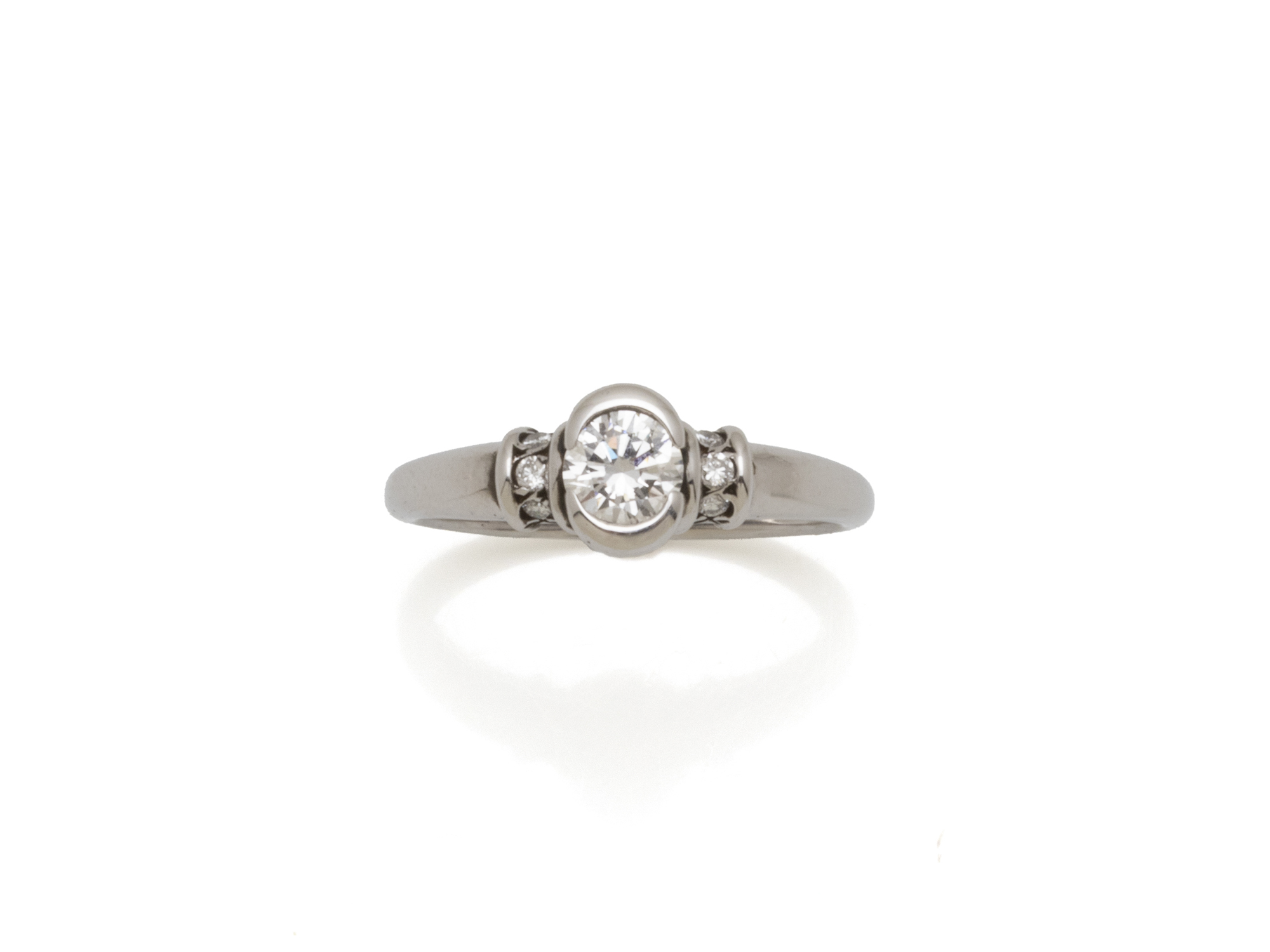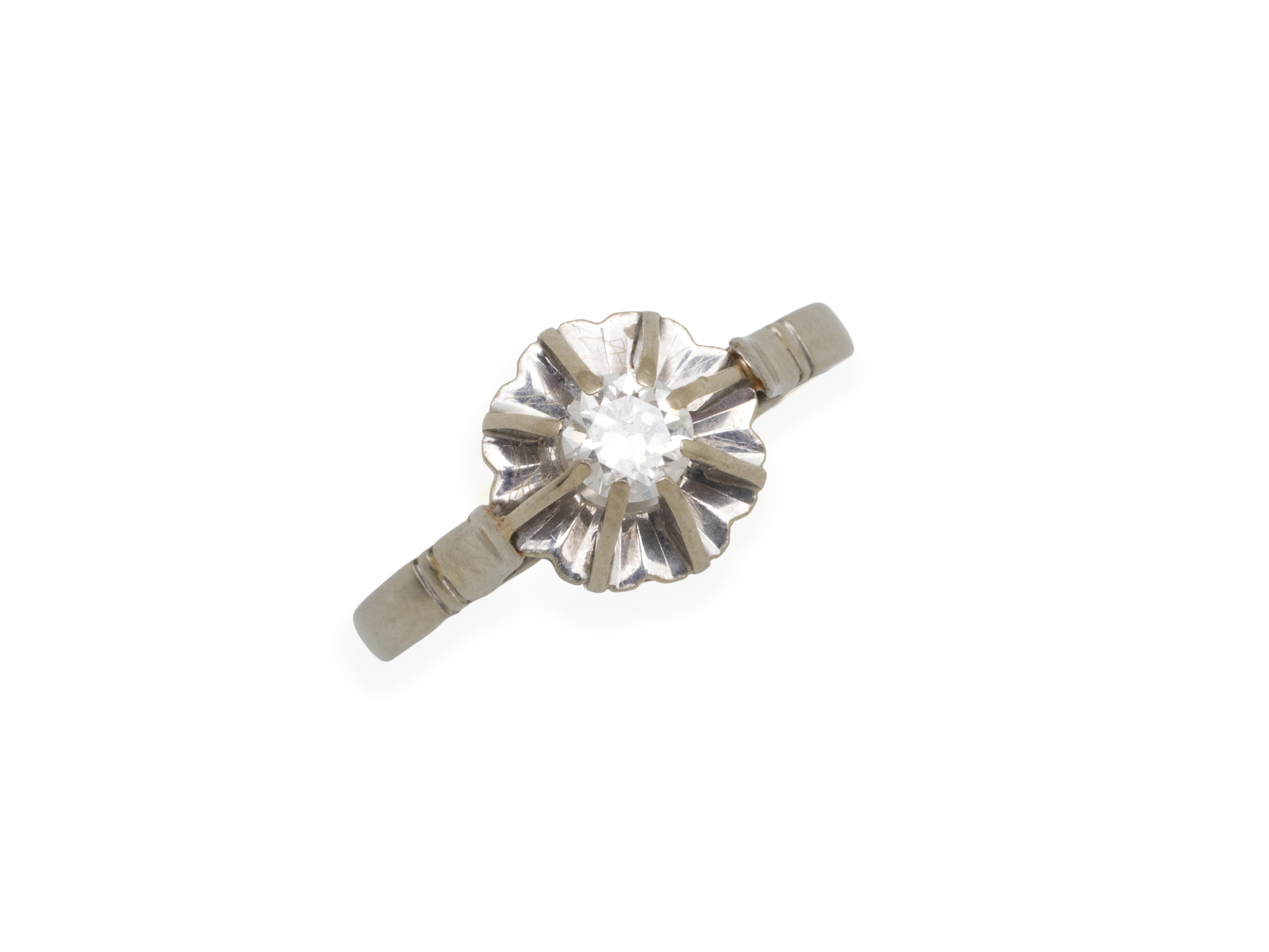 Lot n°50NV1063Bague solitaire en or 750 et platine 850 millièmes, ornée d'un diamant taille ancienne en serti griffe. Travail français de la fin du XIX° siècle.