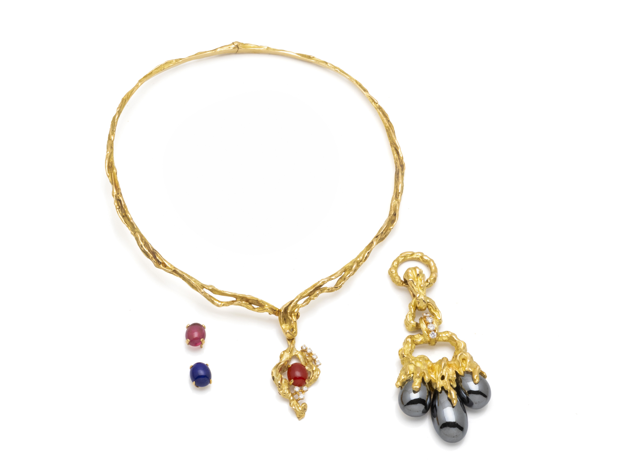 Poids brut total: 10.90 g. Haut. pend. : 5.4 cm. Long. chaîne : 45 cm.EST · 600/800€ -