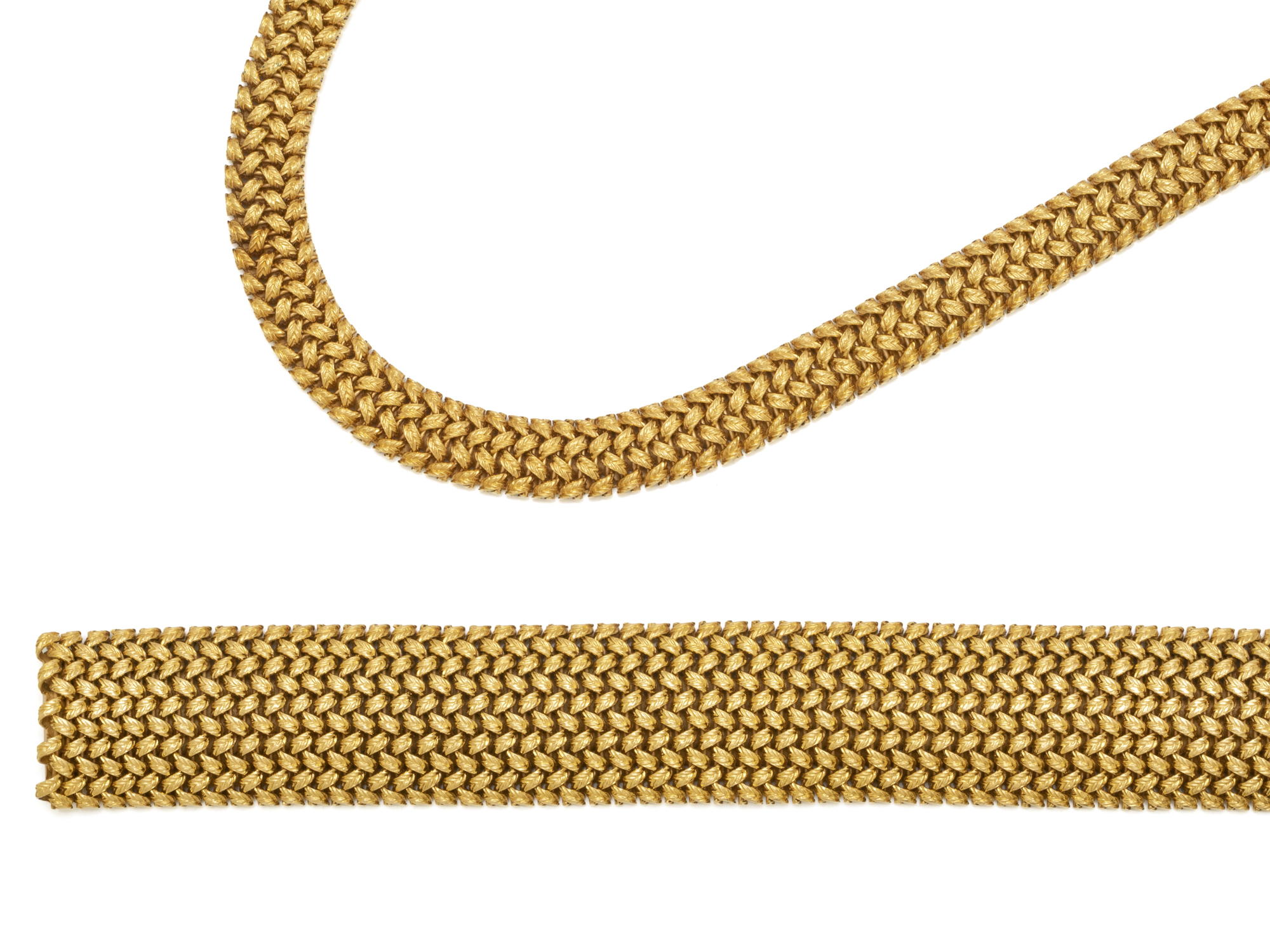 Demi-parure en or 750 millièmes composé d'un collier et d'un bracelet articulés. Travail français.