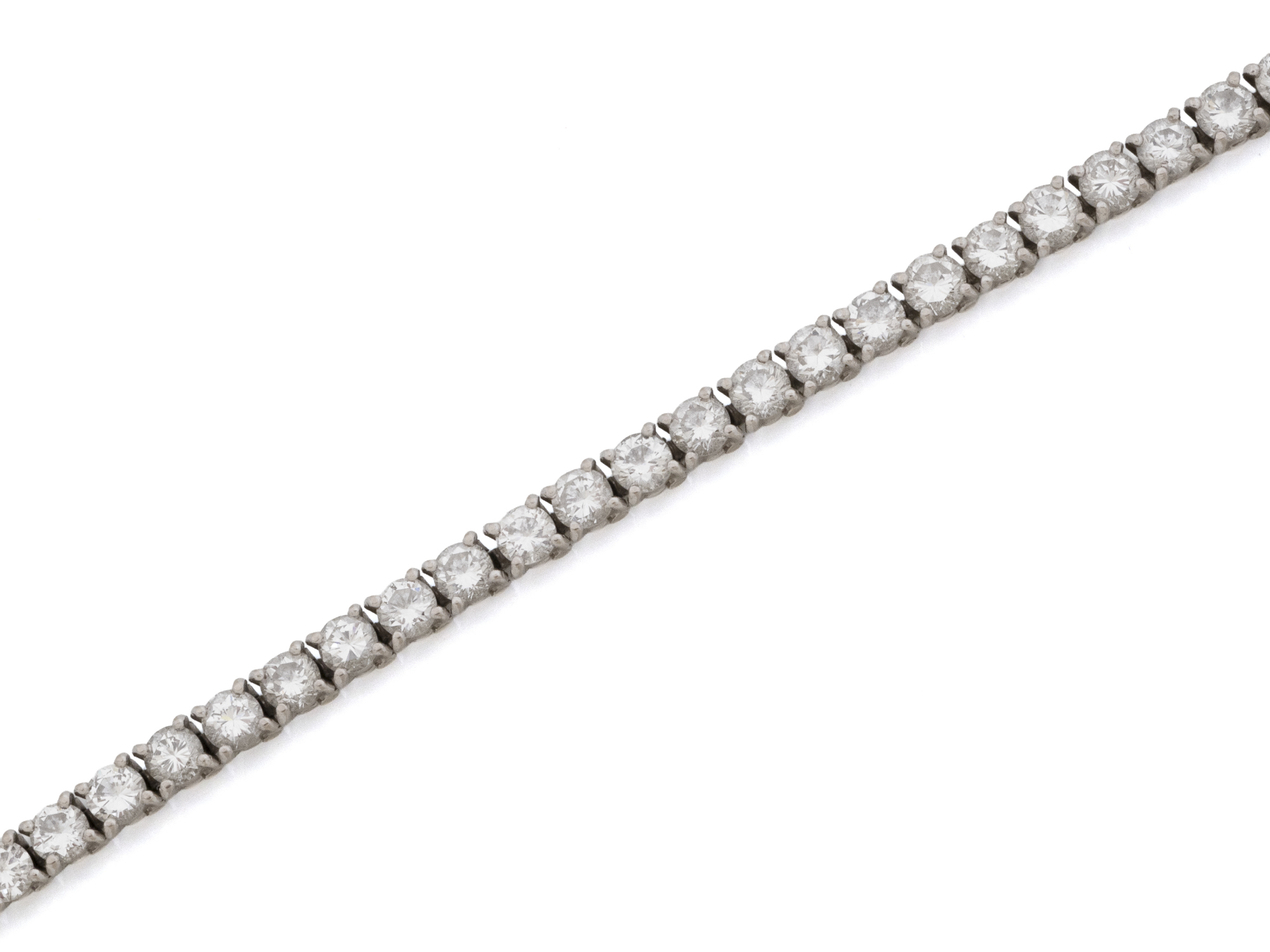 Lot n°NV2003Bracelet en or gris 750 millièmes orné d'une ligne de diamants brillantés en serti griffe, agrémenté d'un fermoir à cliquet sécurisé. Travail français.