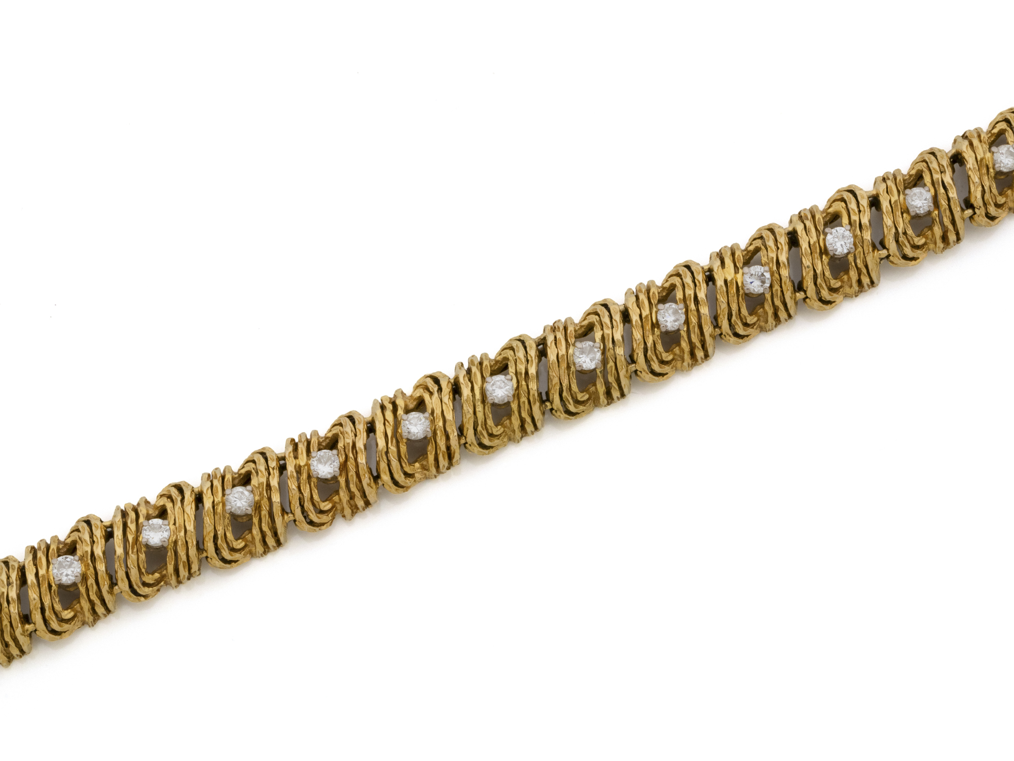 Lot n°NV2010Bracelet articulé or 750 millièmes et diamants.