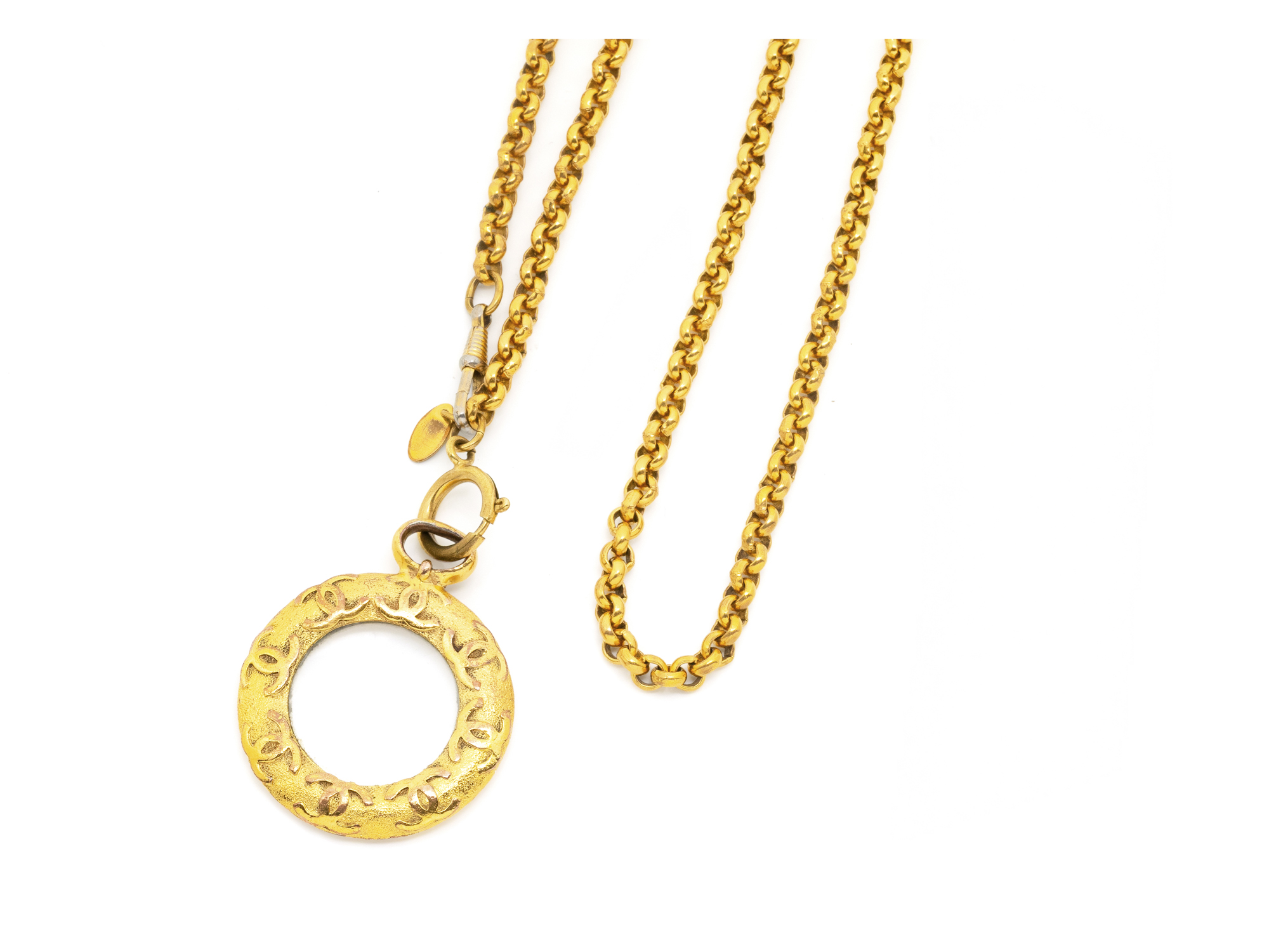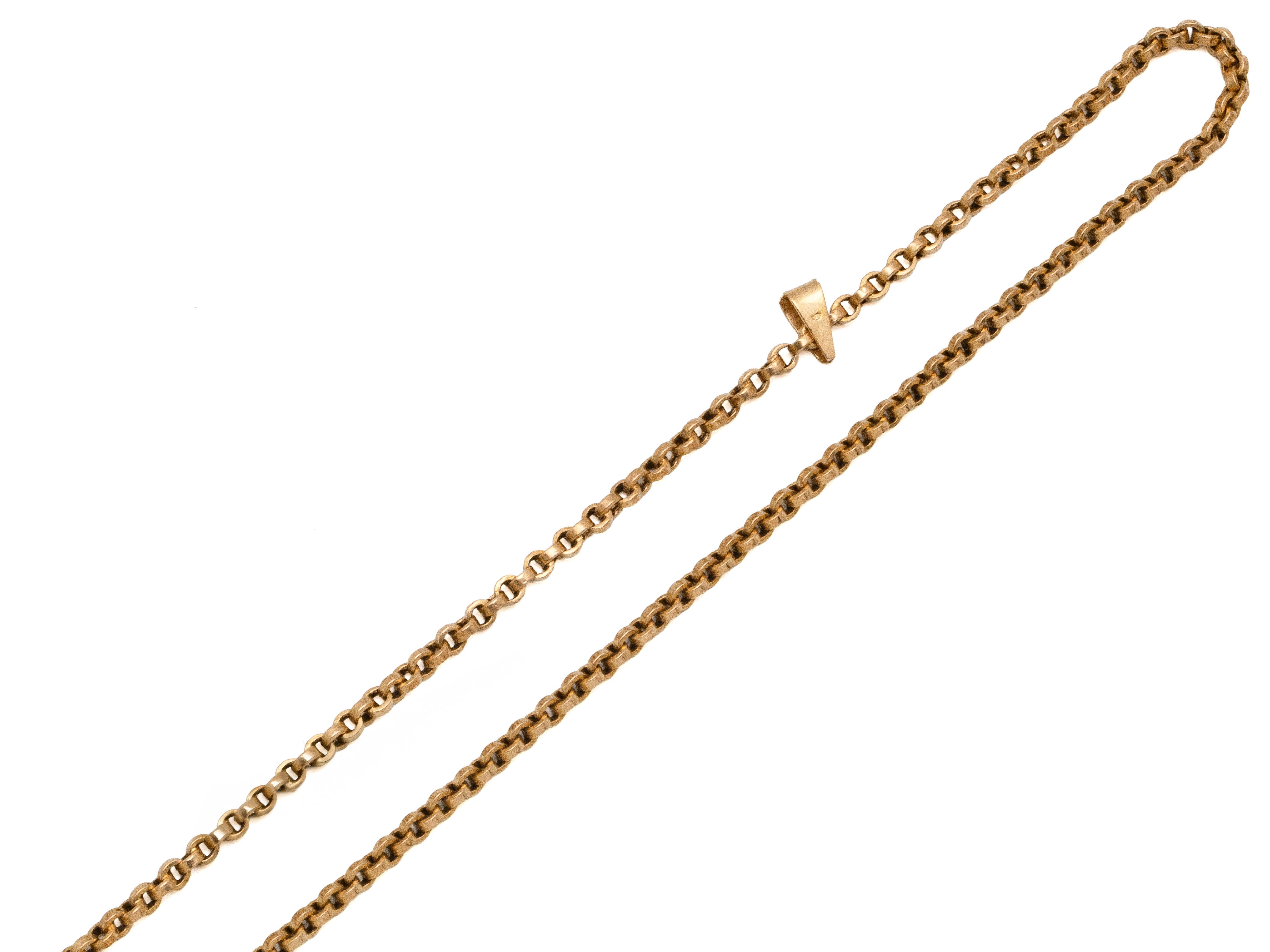 Lot n°226NV9138Longue chaîne en or 750 millièmes, maille jaseron. Elle est agrémentée d'un fermoir anneau ressort et d'une bélière accidentée. Travail français, vers 1940/50. (usures, légers chocs)