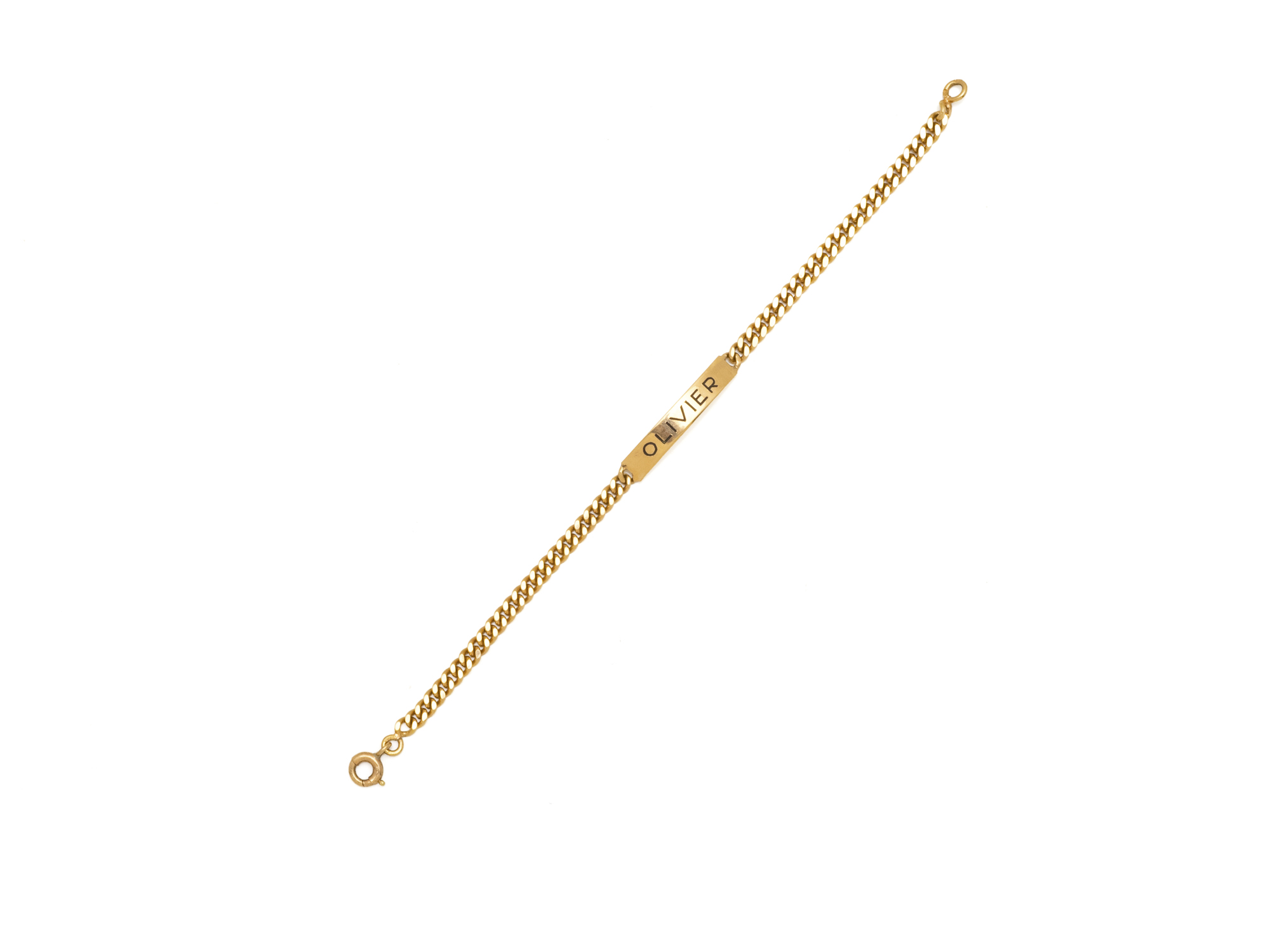 Lot n°211NV9035Bracelet gourmette de bébé en or 750 millièmes signé Olivier.
