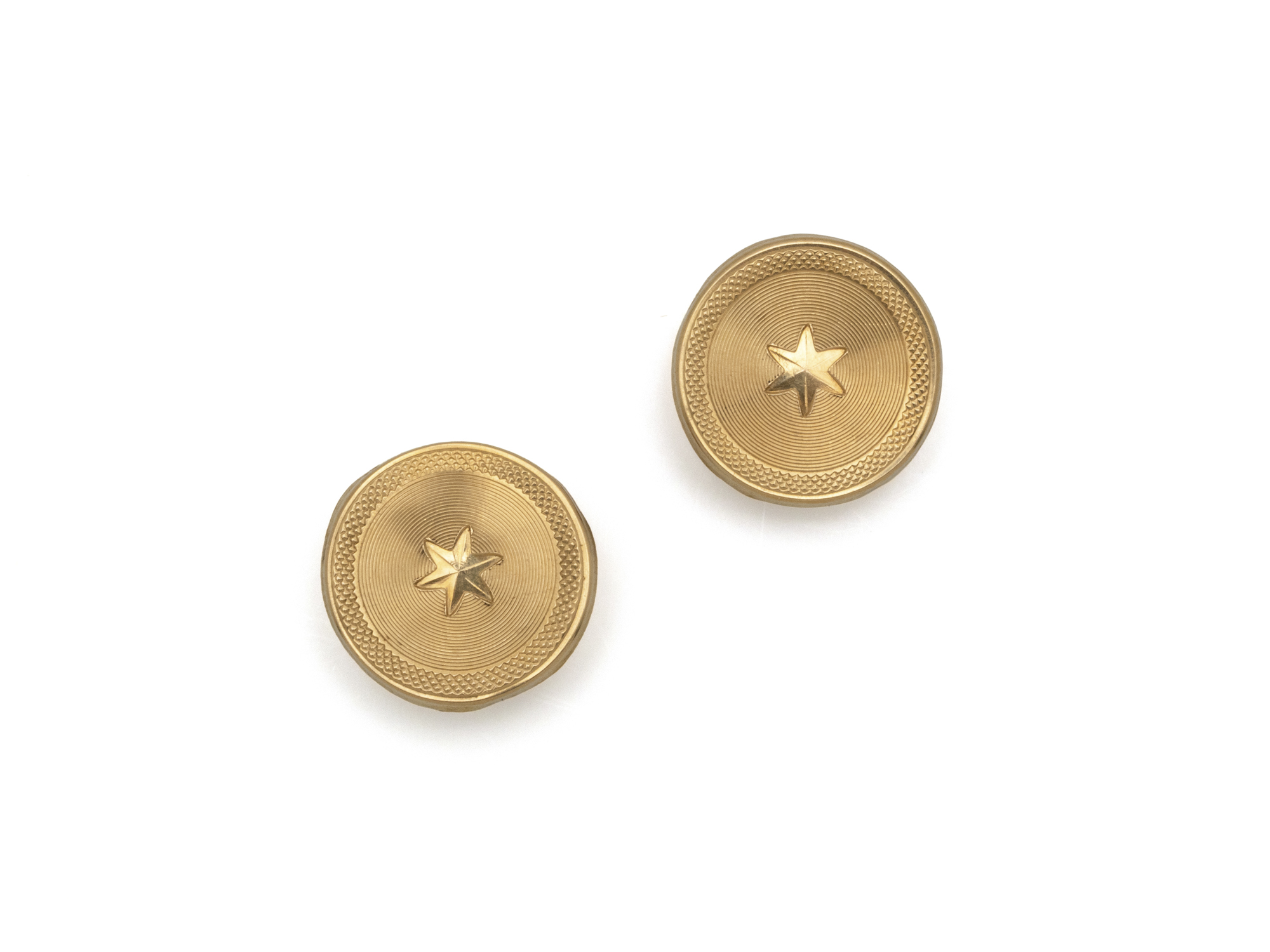 Lot n°55NV9039Paire de boutons de plastron en or 750 millièmes, à décor martelé. Travail français vers 1900.