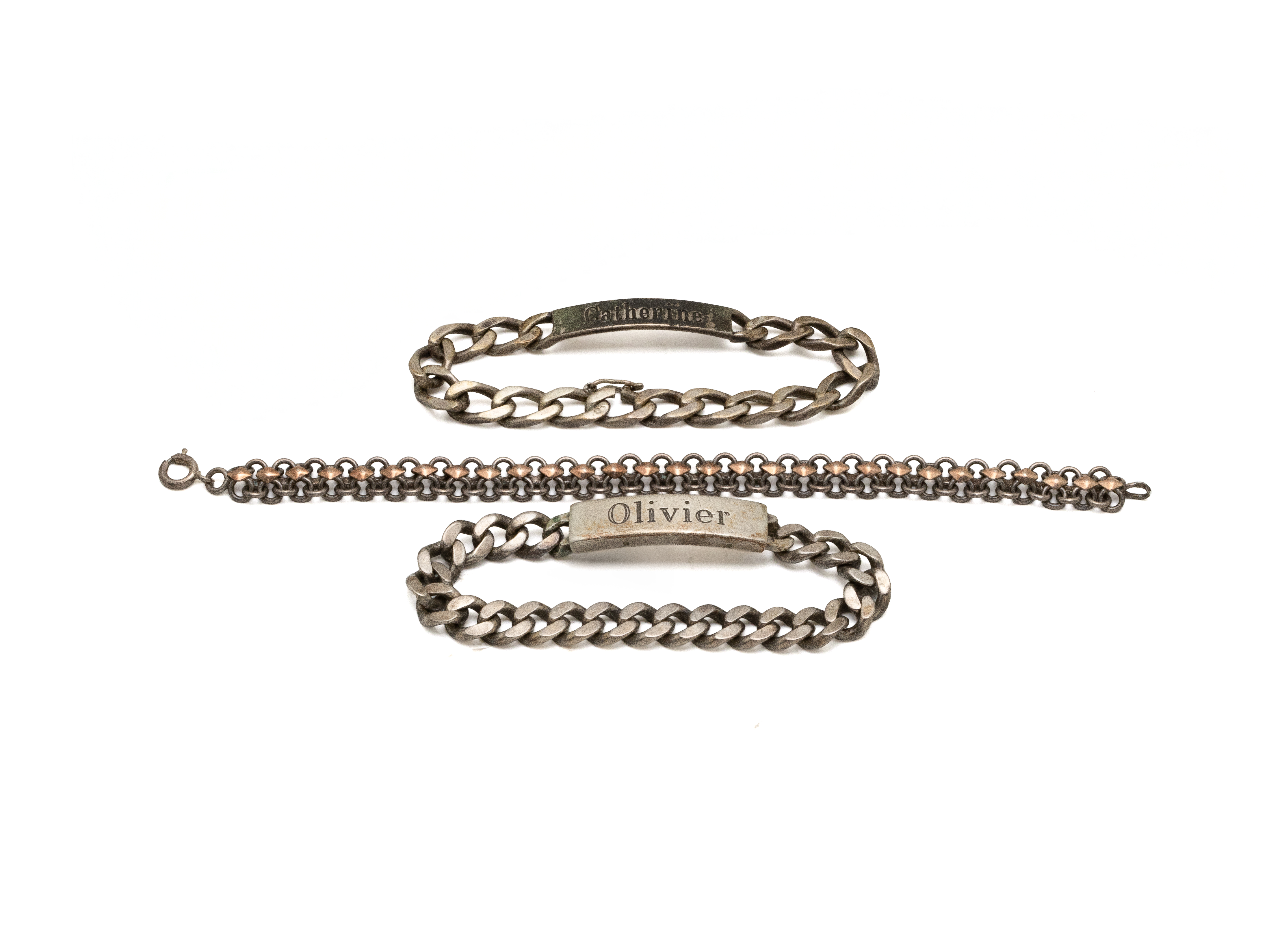 Lot n°220NV9051Lot en argent 800 millièmes composé de 3 bracelets gourmettes dont 2 signés Olivier et Catherine. Travail français.