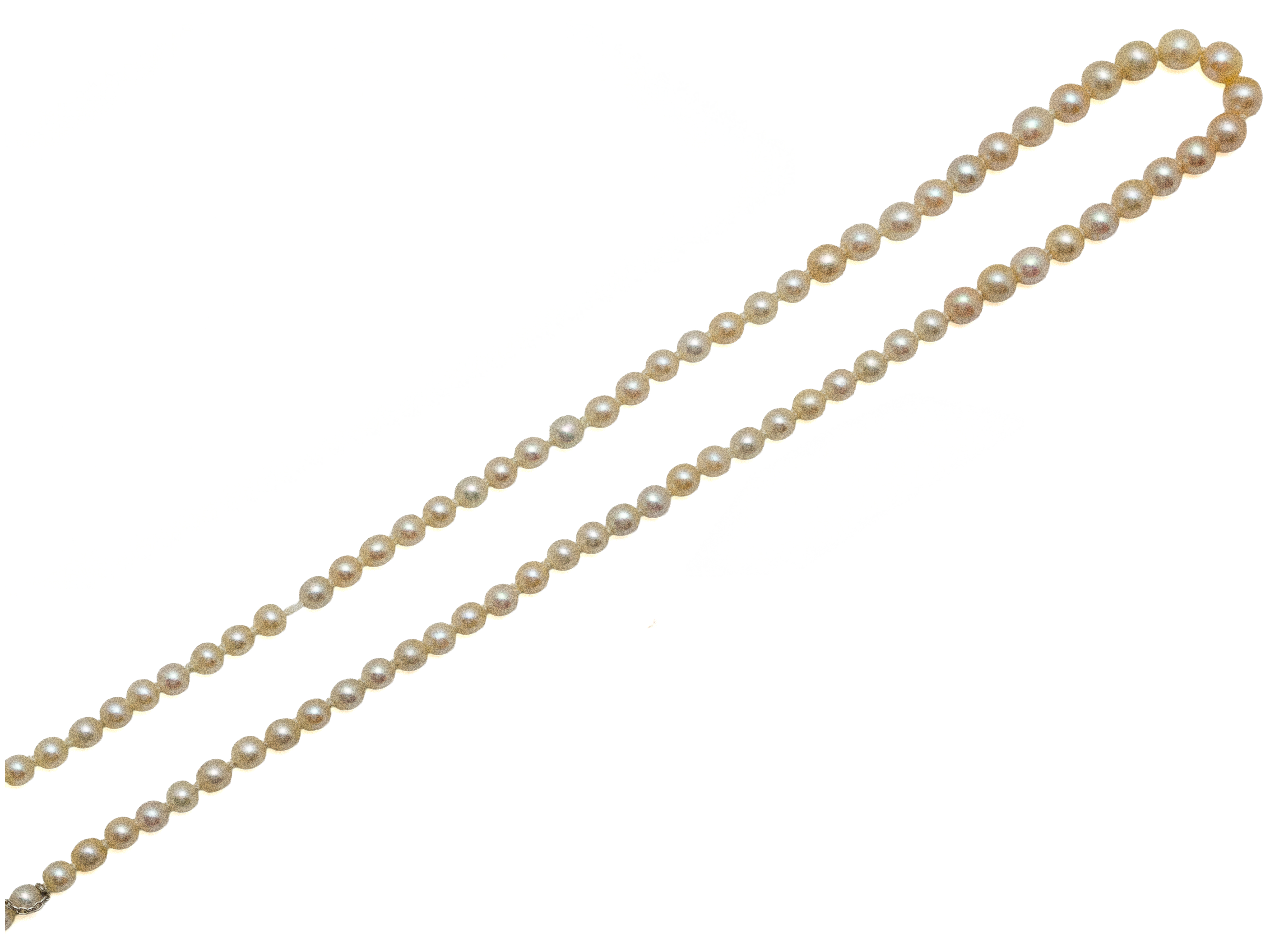 Lot n°56NV9081Collier composé d'une chute de perles de culture d'environ 3.9 à 8 mm. Il est agrémenté d'un fermoir à cliquet en or 750 millièmes. Travail français. (prévoir un renfilage)