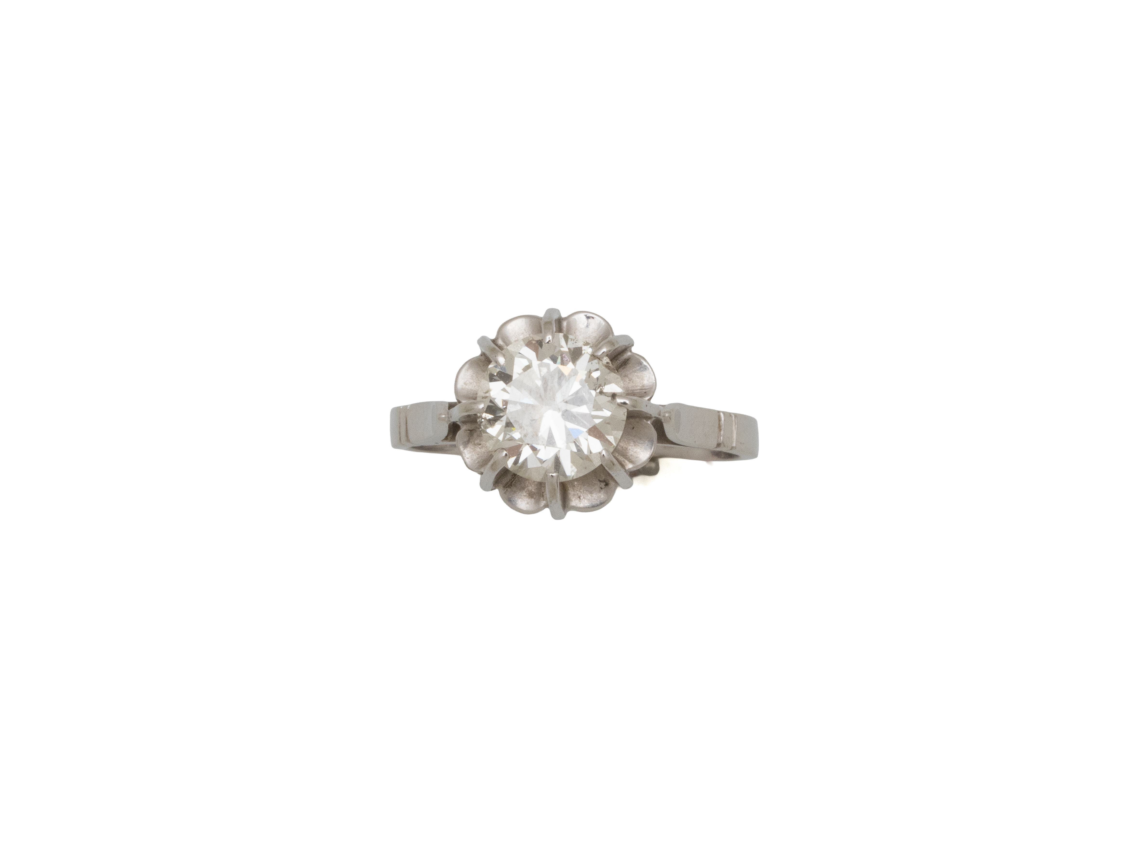 Lot n°242NV9083Bague en or gris 750 millièmes, ornée d'un diamant brillanté en serti griffe. Travail français vers 1950.
