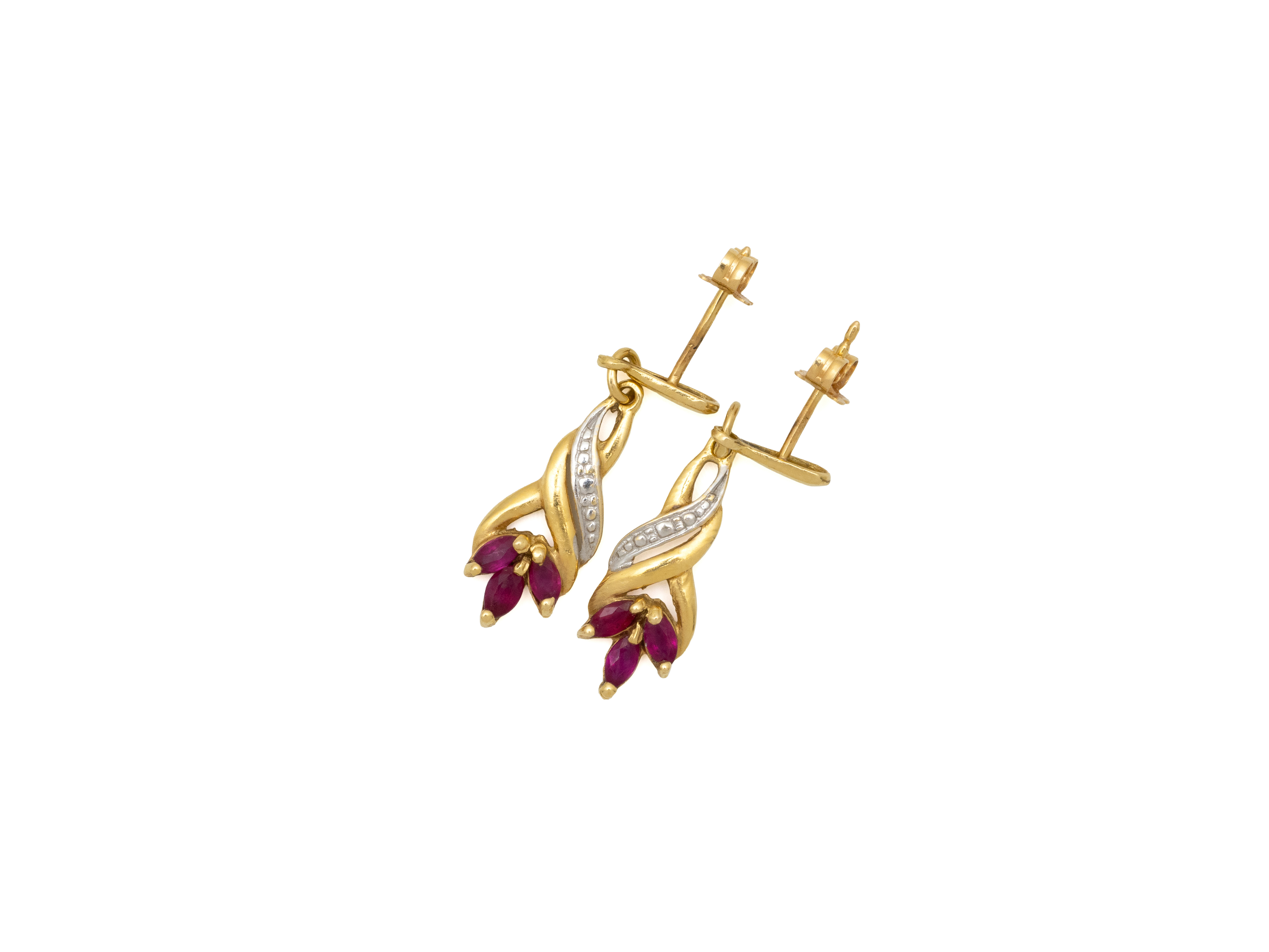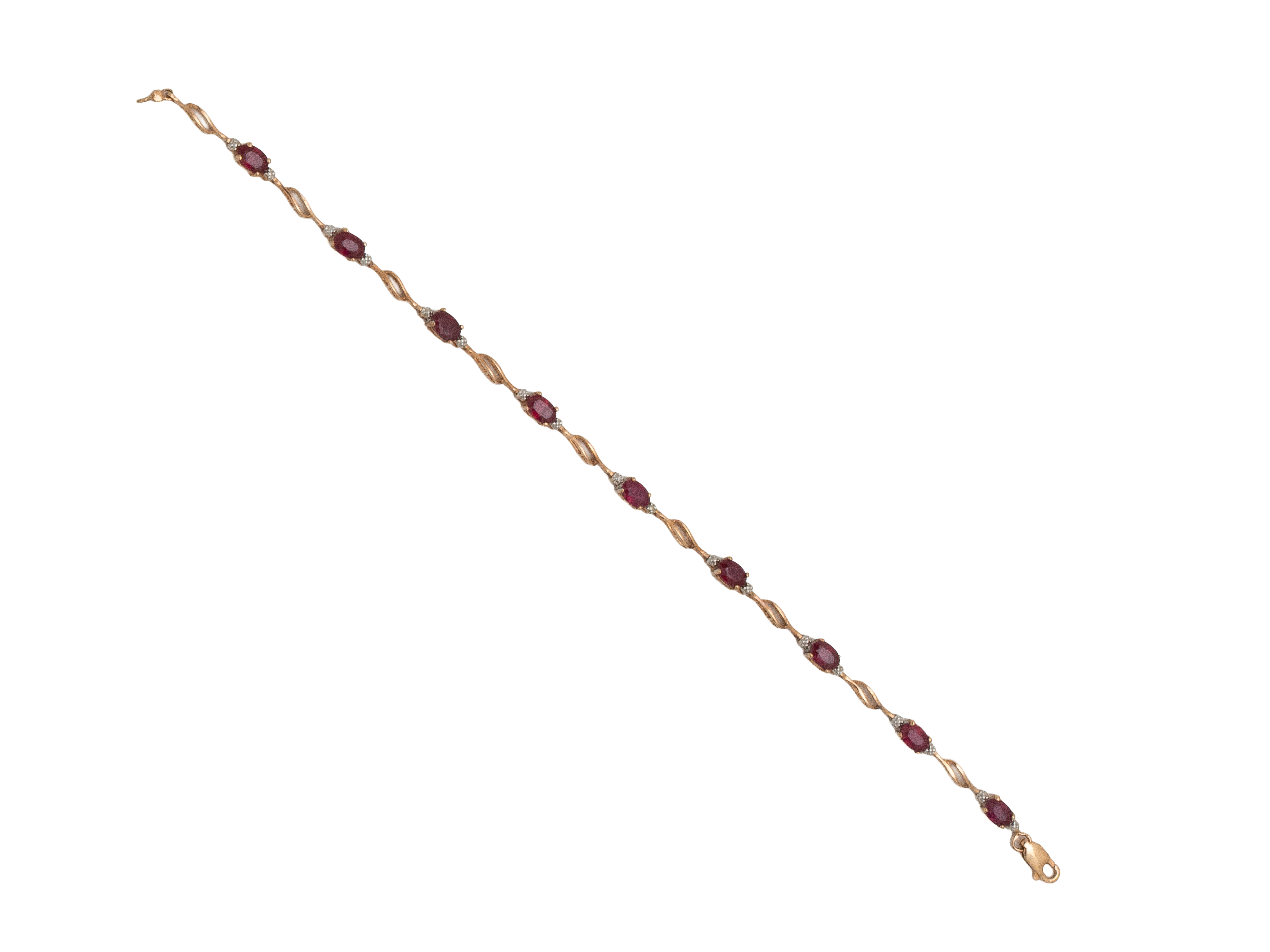 Lot n°241NV9089Bracelet articulé en or 375 millièmes décoré de rubis traités au plomb ovales facettés en serti griffe épaulés de diamants brillantés. Il est agrémenté d'un fermoir mousqueton.