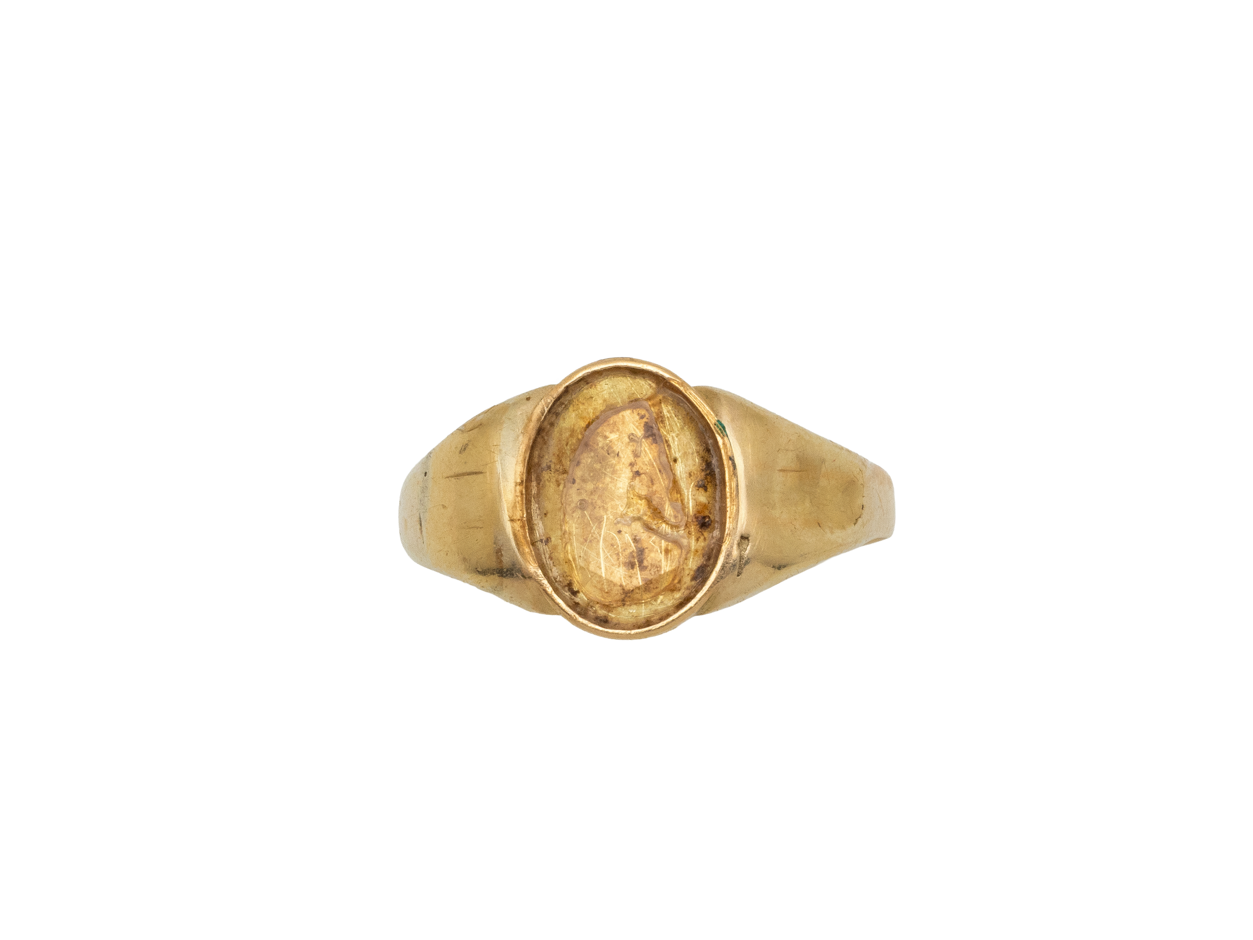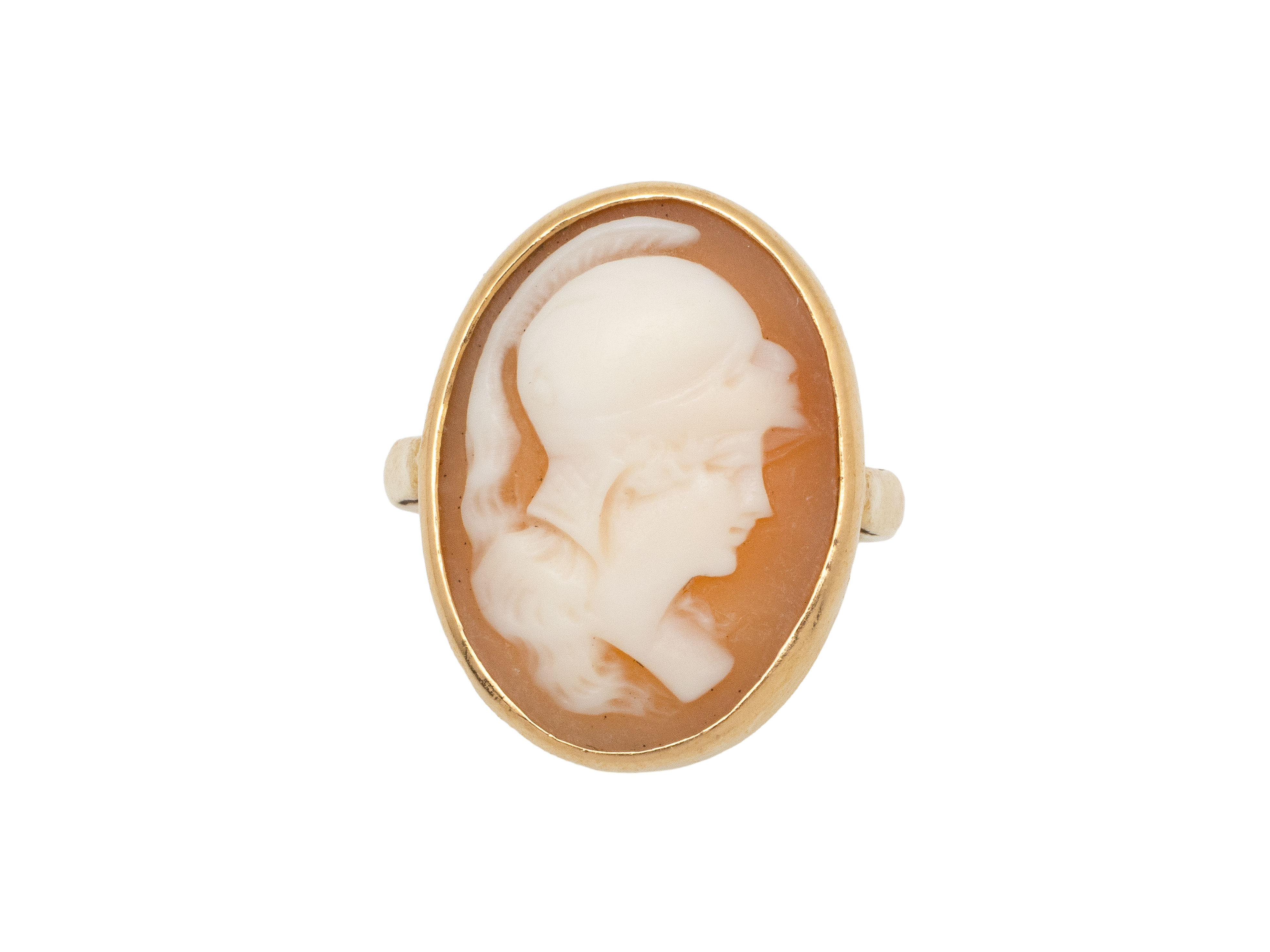 Lot n°29NV9189Bague en or 750 millièmes, ornée d'un camée sur agate 2 couches gravé du profil droit d'un homme casqué. Travail de la fin du XIX° siècle. (usures)