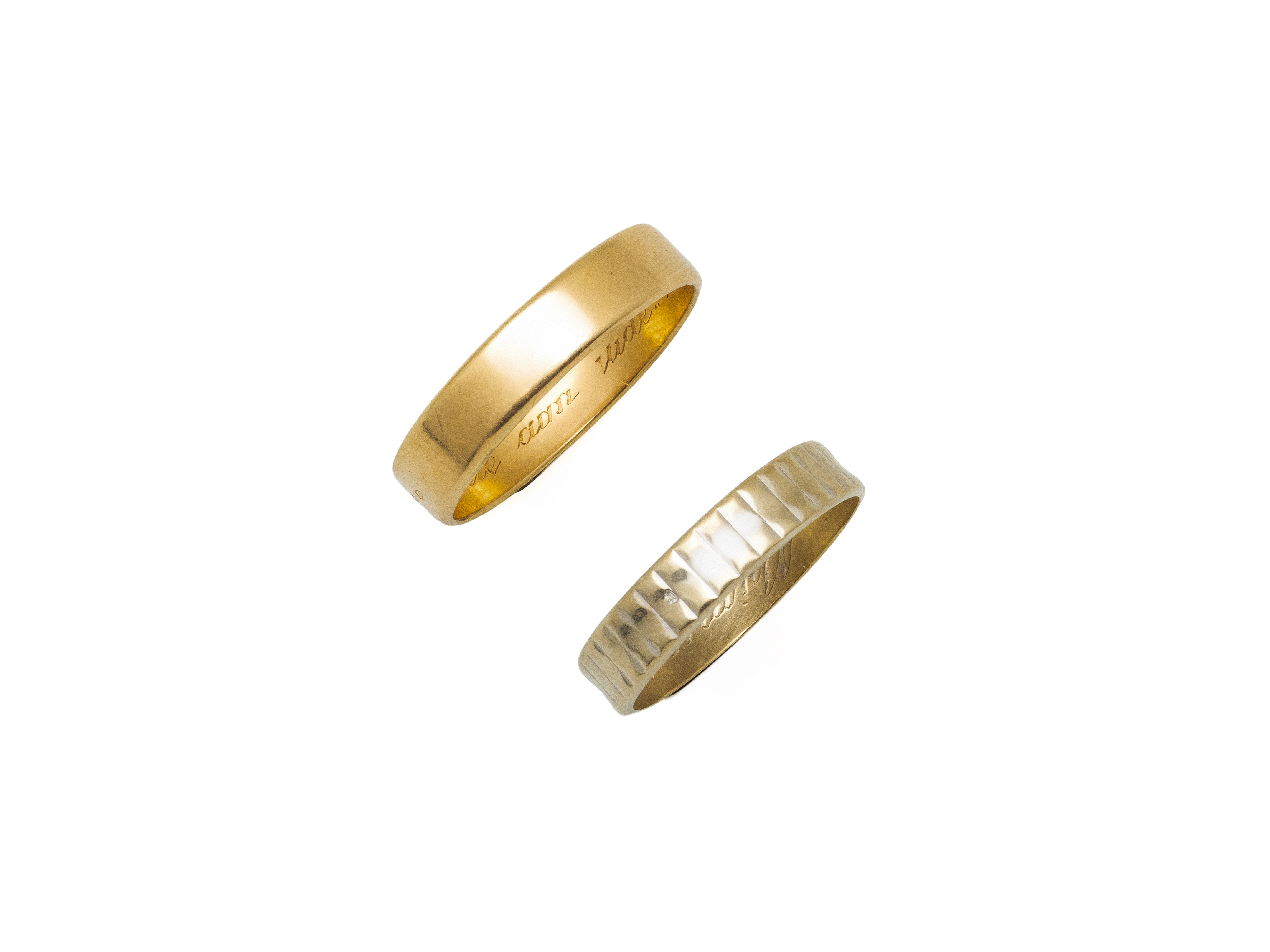 Lot n°65NV9097Lot en or 750 millièmes, composé de 2 alliances. Inscriptions gravées à l'intérieur. Travail français.