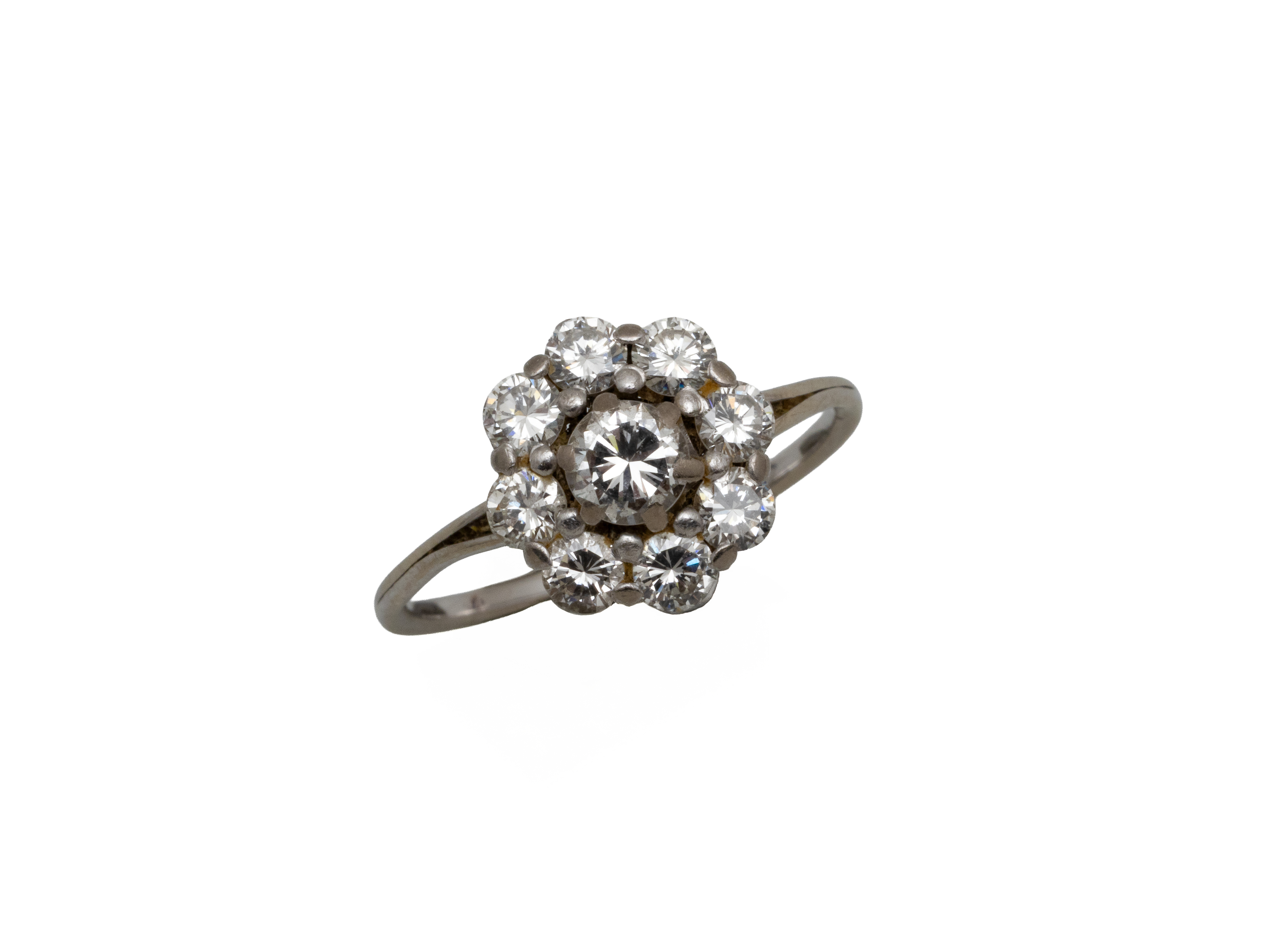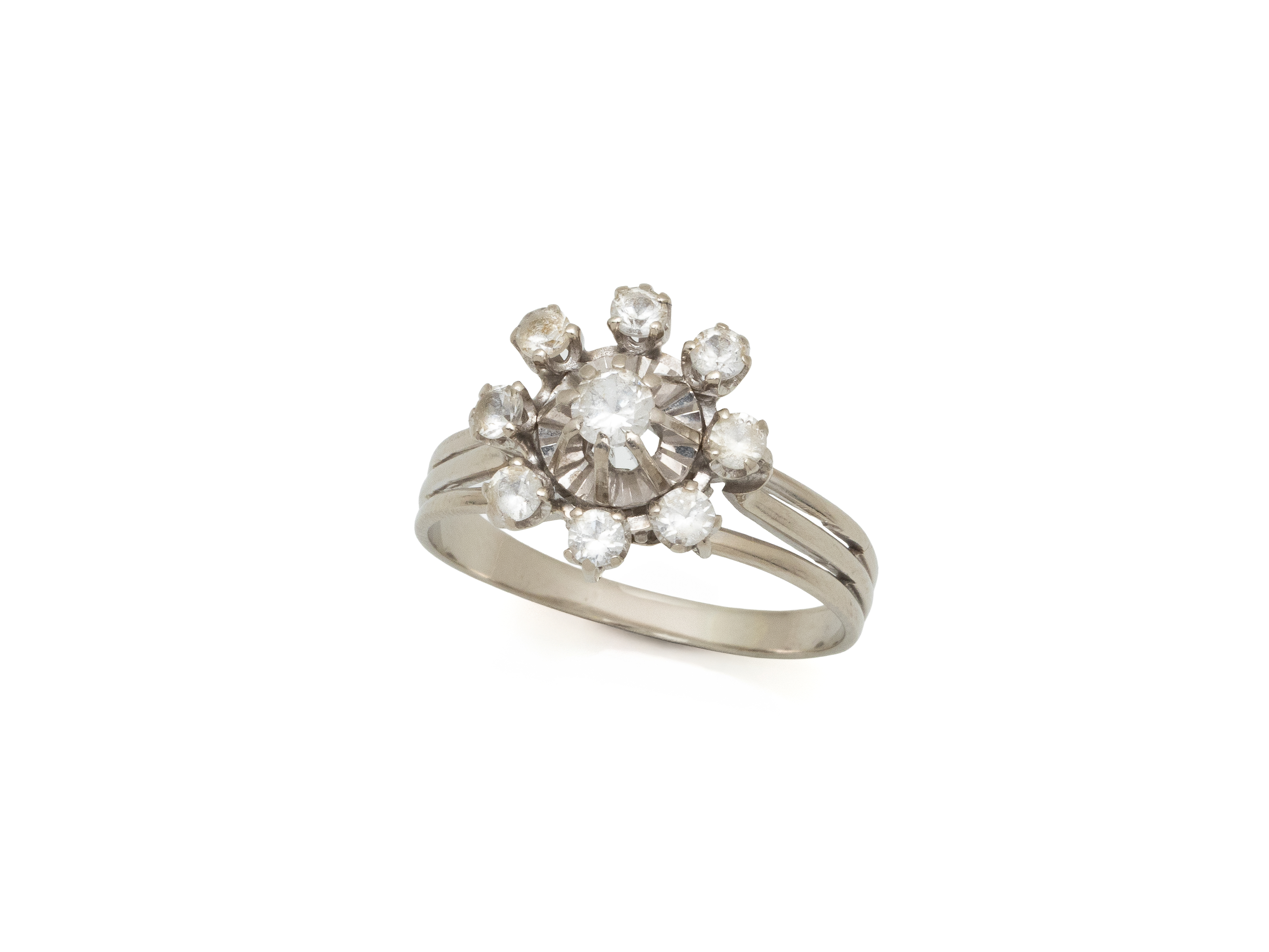 Lot n°233NV9145Bague marguerite en or gris 750 millièmes, ornée de diamants brillantés en serti griffe.