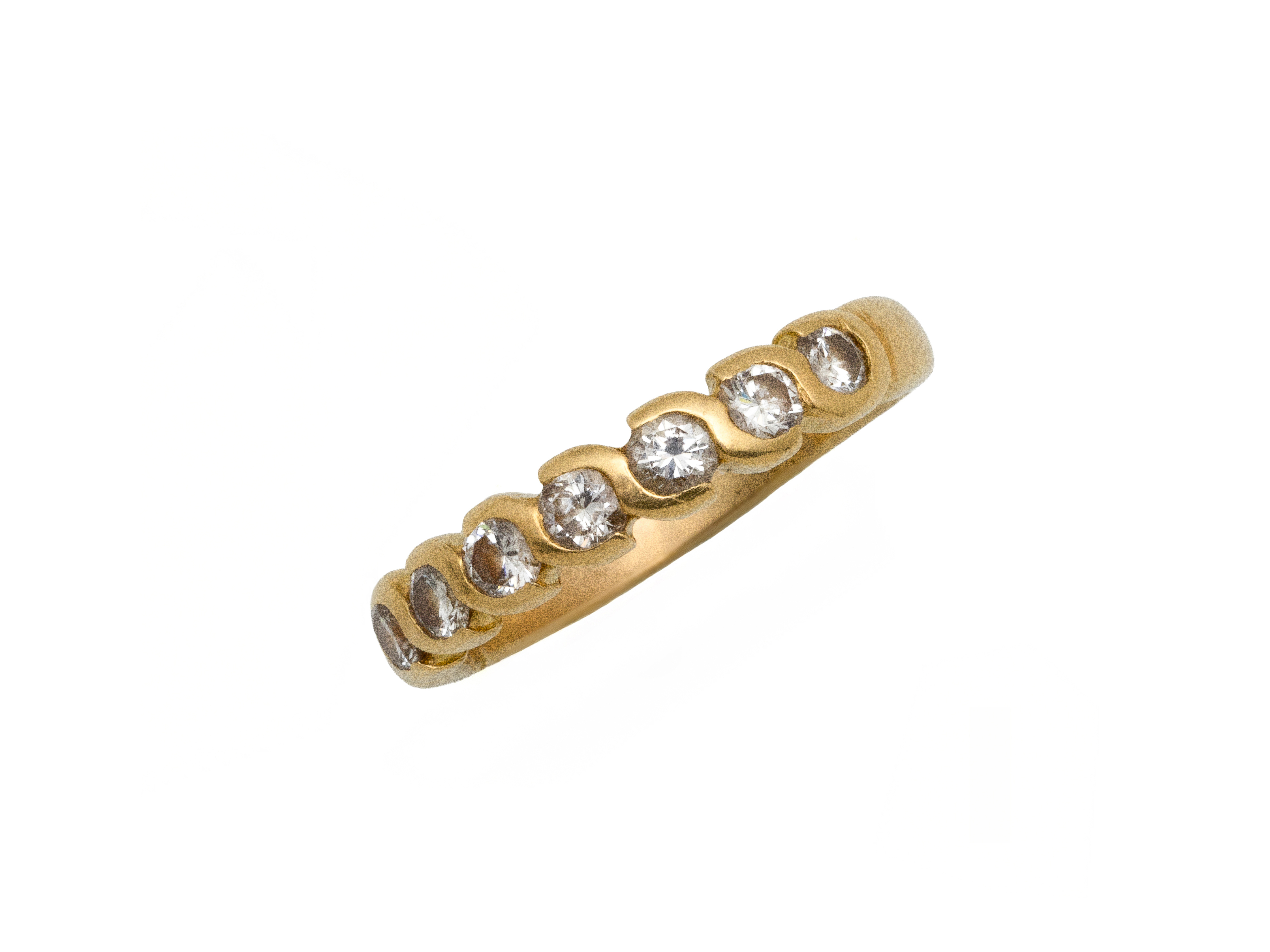 Lot n°223NV9135Demi-alliance en or 750 millièmes, habillée d'une ligne de diamants brillantés en demi serti clos. Travail français.