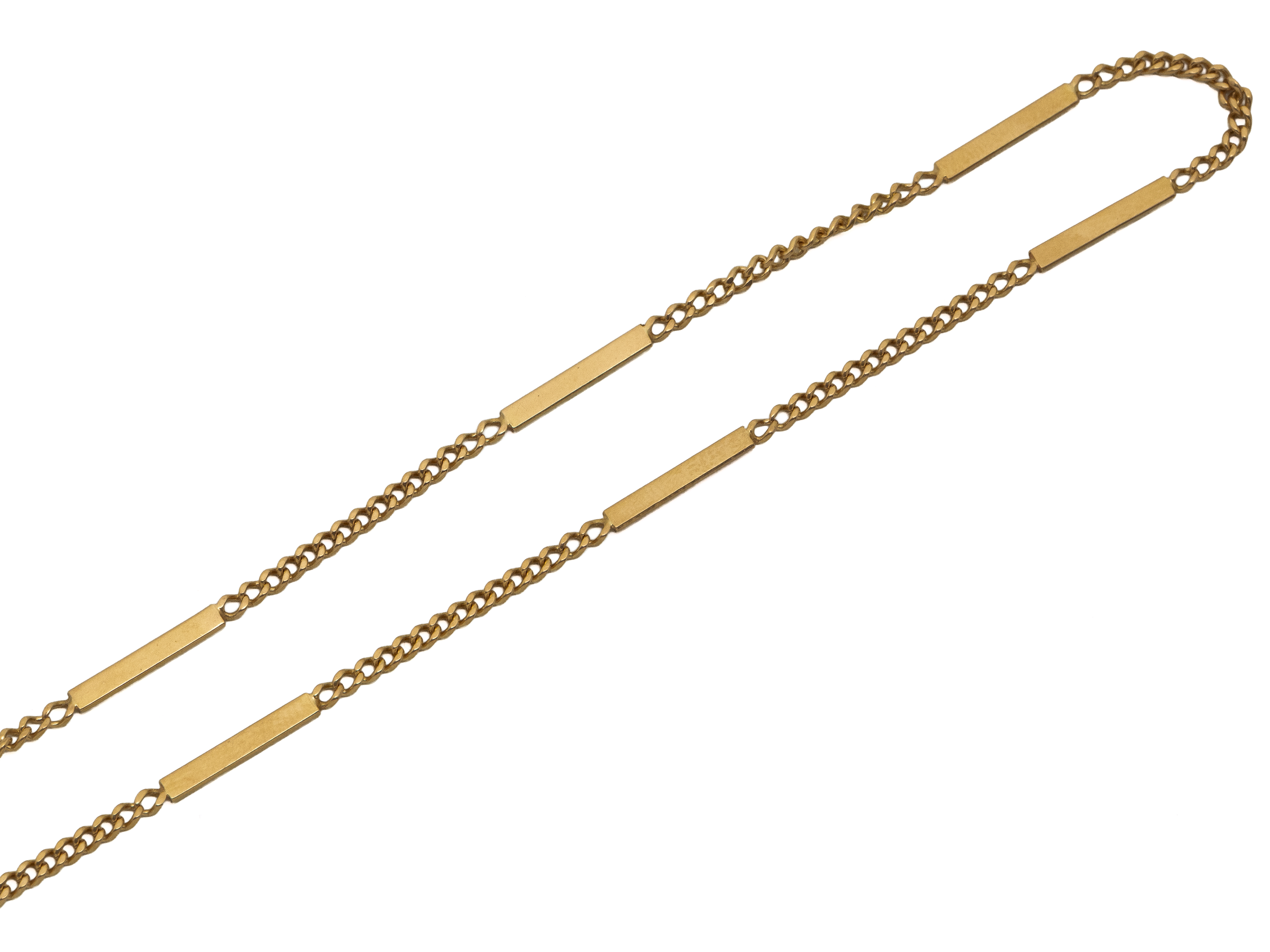 Lot n°234NV9146Chaîne en or 750 millièmes décorée de motifs rectangulaires. Elle est agrémentée d'un fermoir anneau ressort en métal. Travail français.